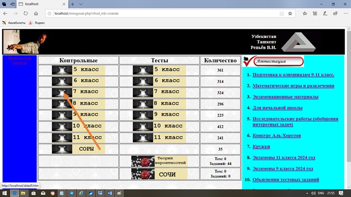 Шаг 2. Щелкните по картинке около номера класса, для которого Вы делаете контрольные.