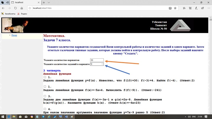 Шаг 4. Поставьте галочку в квадратике около номера типовой задачи. Галочками должно быть отмечено не менее того количества, из которого должен состоять вариант. Программа для каждой типовой задачи сгенерирует собственные числовые значения, так что и ответы тоже будут разные.