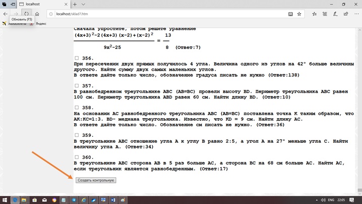 Шаг 5. Закончив ставить галочки, щелкните по кнопке "Создать контрольную".