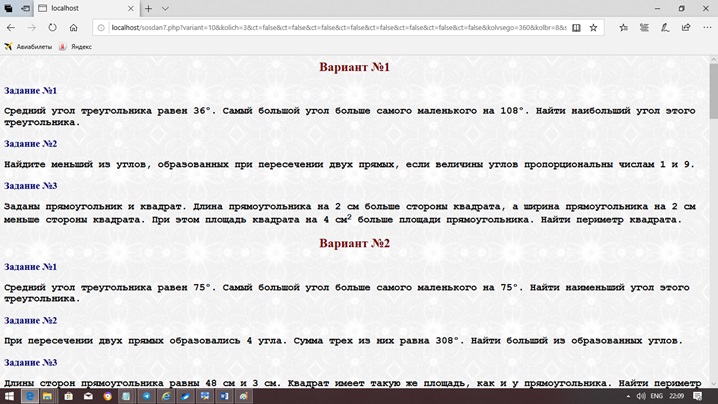 Шаг 6. Вы получите заказанное количество вариантов, состоящих из заданного количества заданий. В конце вариантов находятся ответы. Нажмите CTRL A, щелкните по выделенному правой кнопкой, выберите Копировать, скопируйте в Word. Там отформатируйте и можете распечатывать.