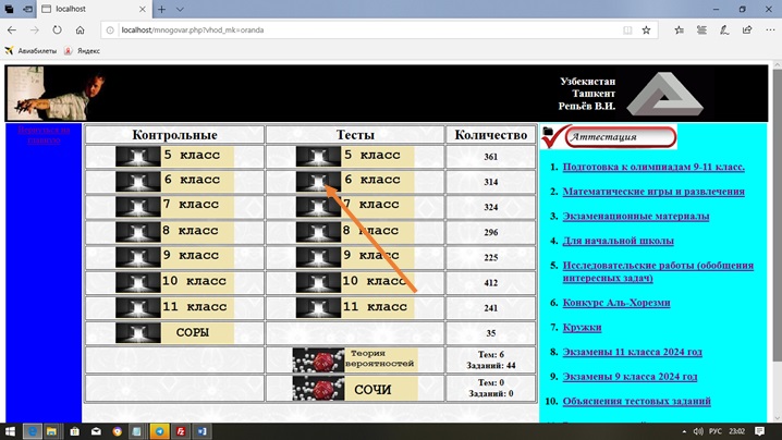 Шаг 2. Щелкните по картинке около номера класса, для которого Вы делаете тестовую работу.