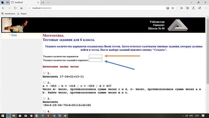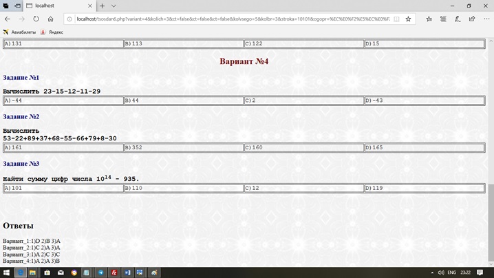 Шаг 6. Вы получите заказанное количество вариантов, состоящих из заданного количества заданий. В конце вариантов находятся ответы. Нажмите CTRL A, щелкните по выделенному правой кнопкой, выберите Копировать, скопируйте в Word. Там отформатируйте и можете распечатывать.
