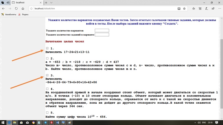 Шаг 4. Поставьте галочку в квадратике около номера типовой задачи. Галочками должно быть отмечено не менее того количества, из которого должен состоять вариант. Программа для каждой типовой задачи сгенерирует собственные числовые значения, так что и ответы тоже будут разные.