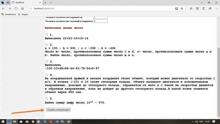 Шаг 5. Закончив ставить галочки, щелкните по кнопке "Создать контрольную".