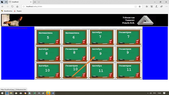Шаг 2. Ученик должен щелкнуть по табличке с номером класса, где он учится, и названием предмета