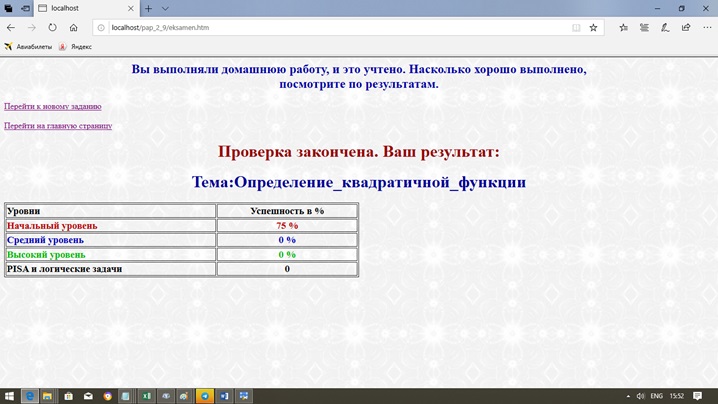 Шаг 5. Если получится такая картинка, ученик увидит результат своей работы, а сам результат будет записан на сервер.