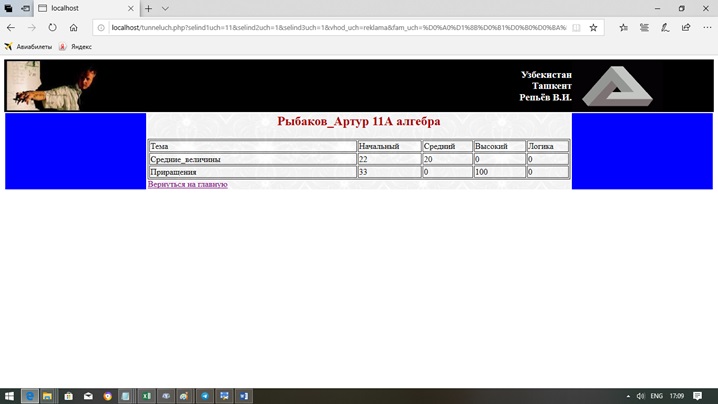 Шаг 2. После щелчка по кнопке "Войти в систему" появится страница с результатами ученика.