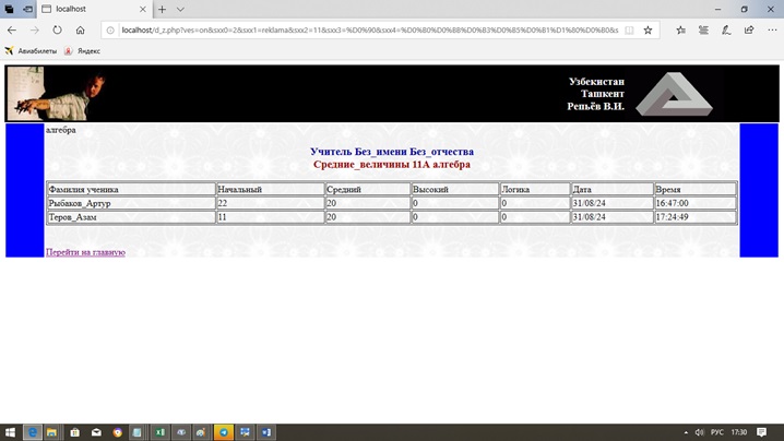 Шаг 3. Появится список учеников выбранного класса, которые выполняли данную работу. В списке показаны результаты по каждому из разделов работы, дата выполнения и время выполнения.